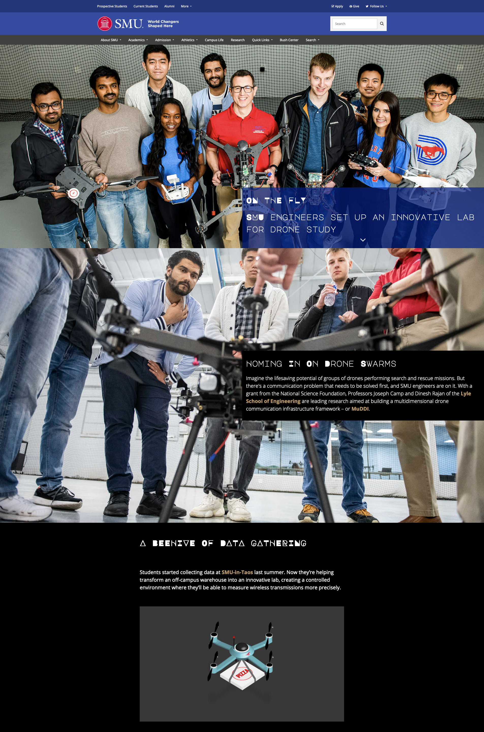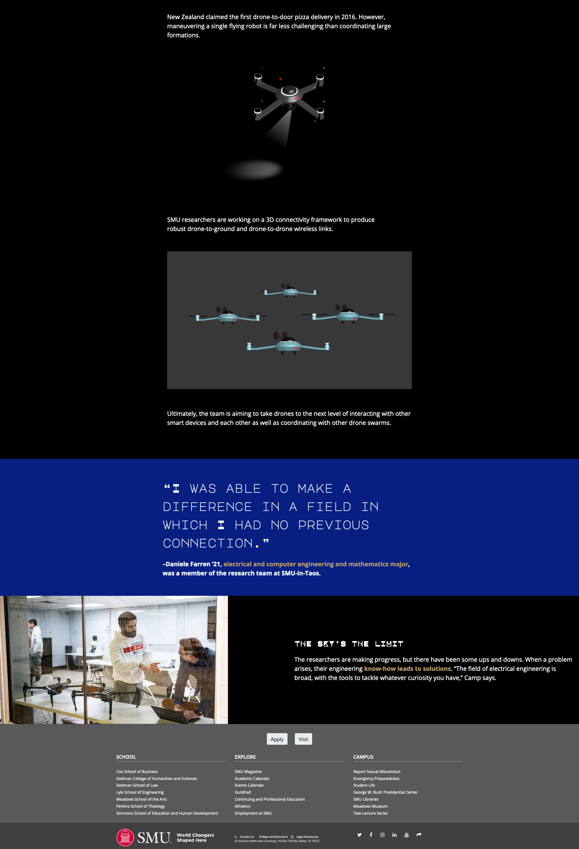 Designed a beautiful, minimalist web page to showcase the fascinating research SMU students are conducting in the field of drone technology.