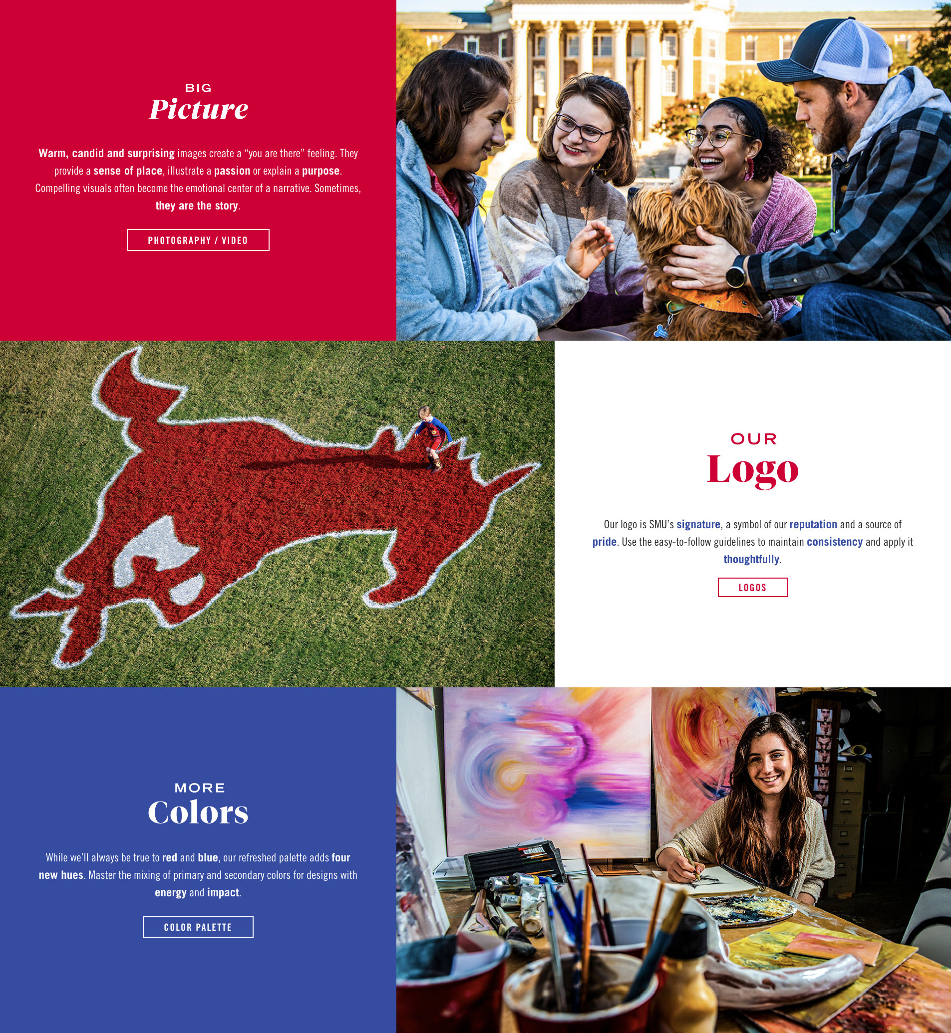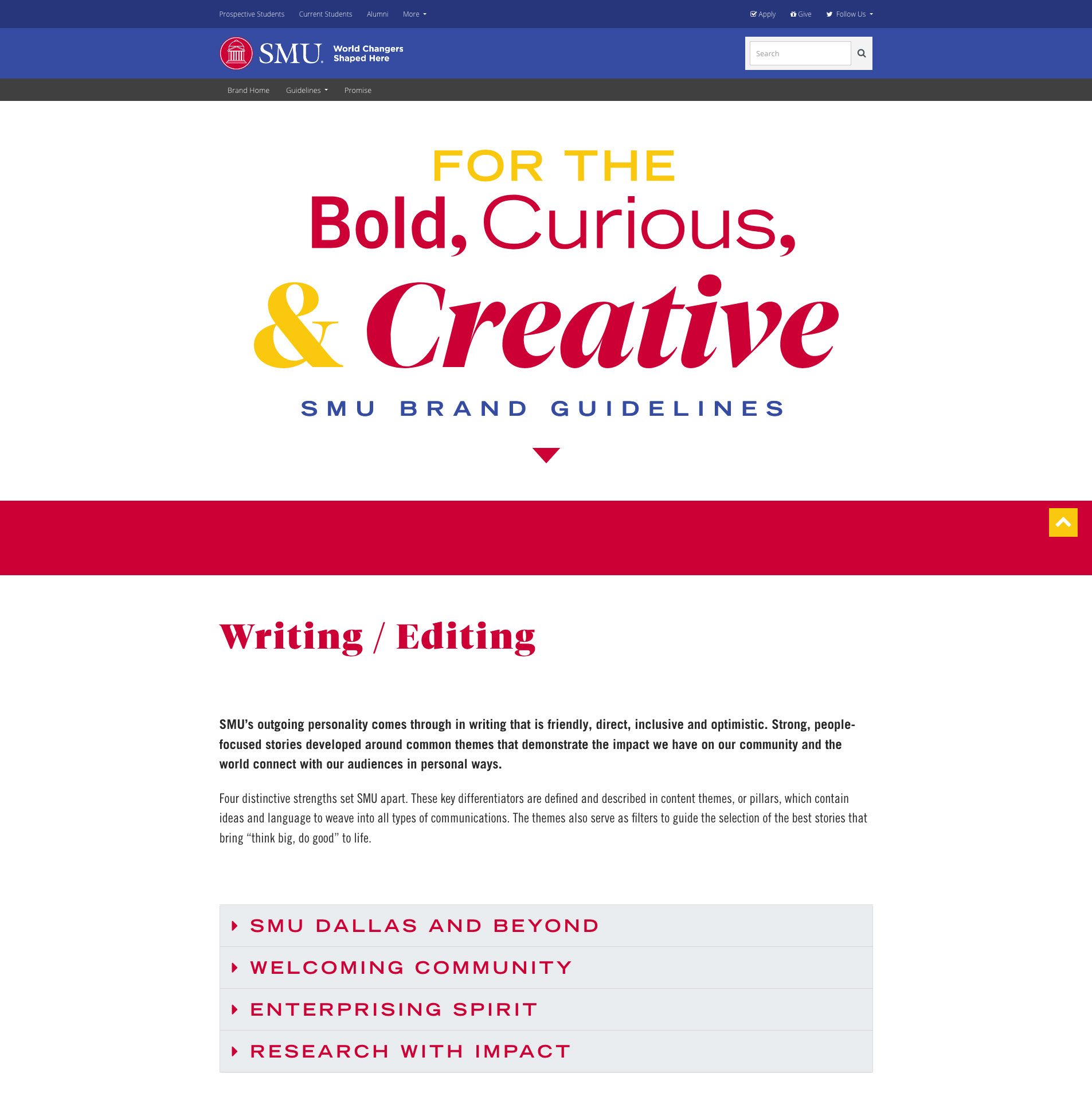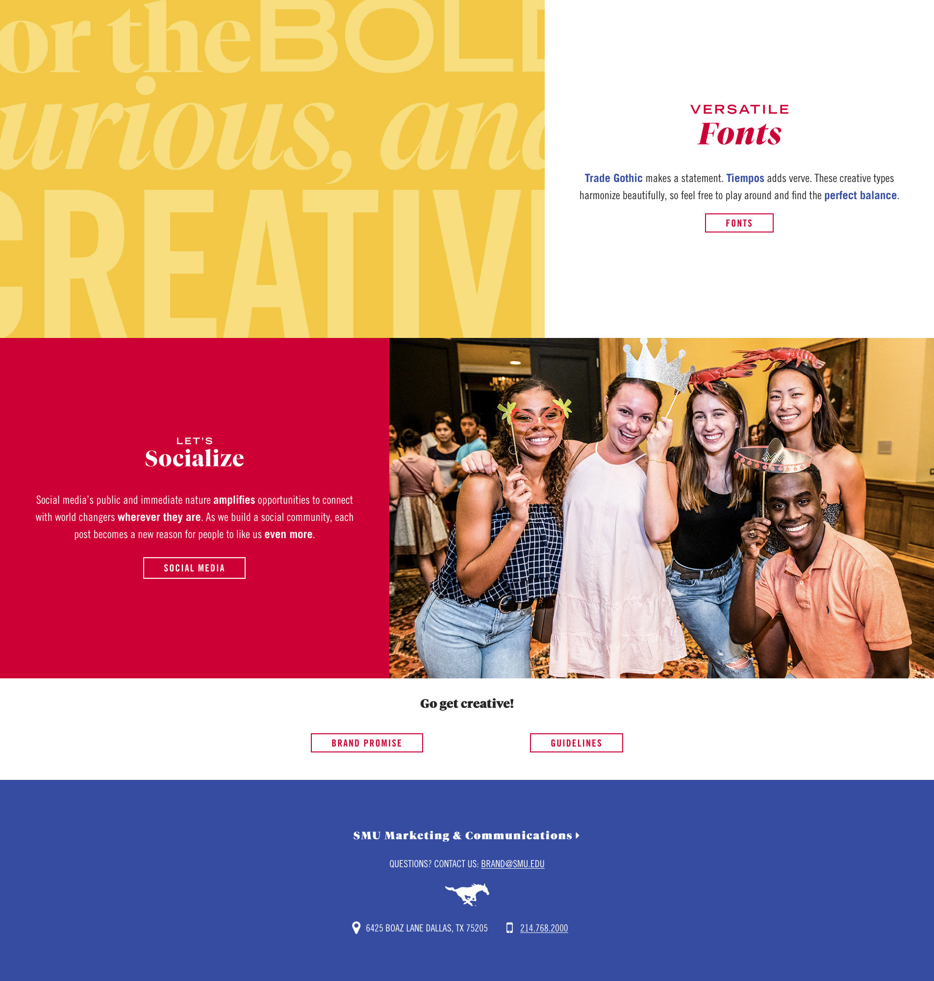 Large web redesign project to reintroduce SMU's digital presence and revised branding to align with the University's "Bold, Curious, and Creative" content pillars.