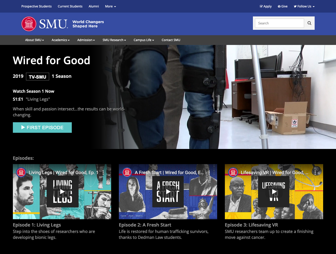 Designed a Netflix style page for a featured story about how SMU students and faculty are using technology for good.
